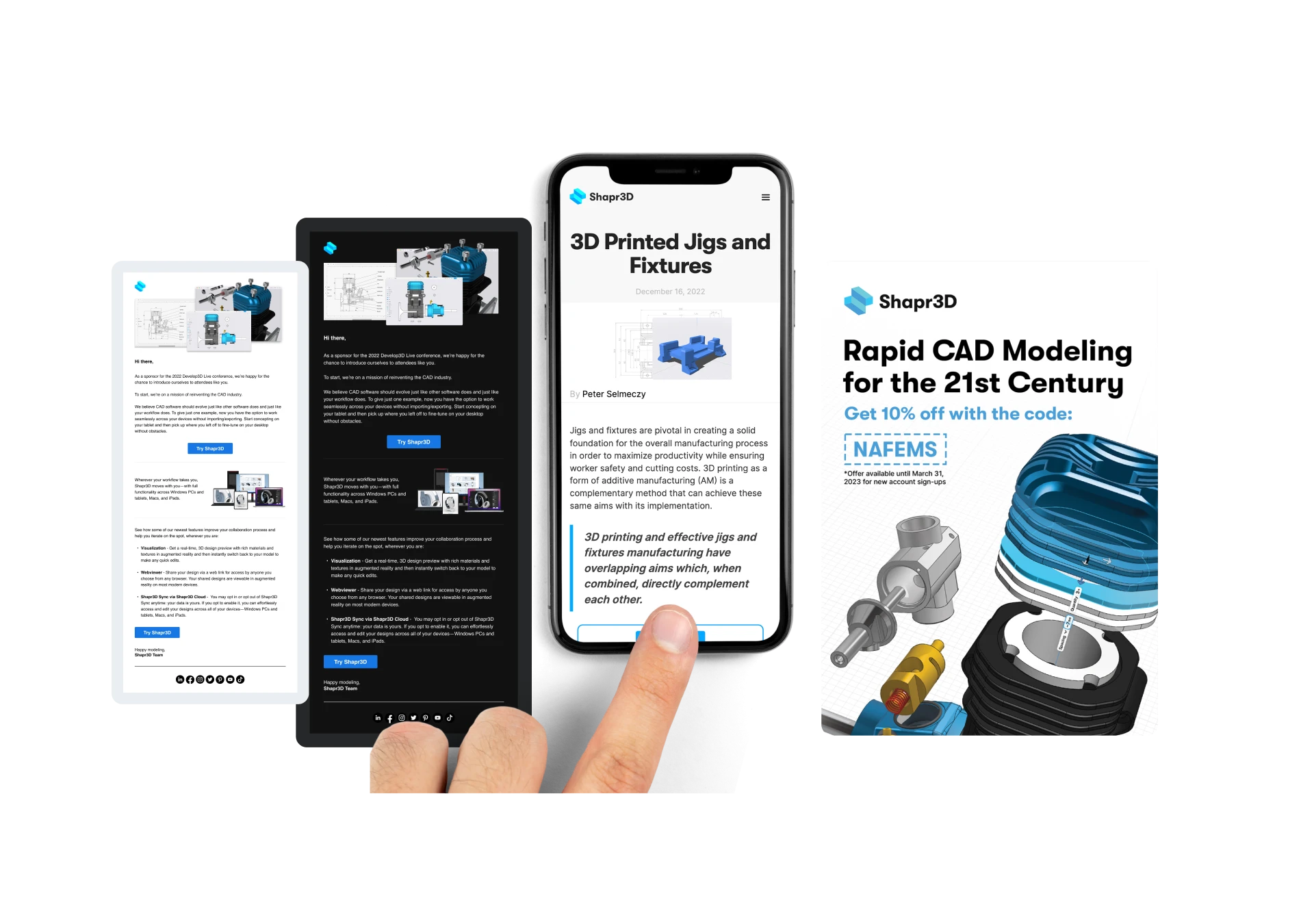Each set of materials was customized to align with partner brand guidelines while maintaining Shapr3D’s visual identity.